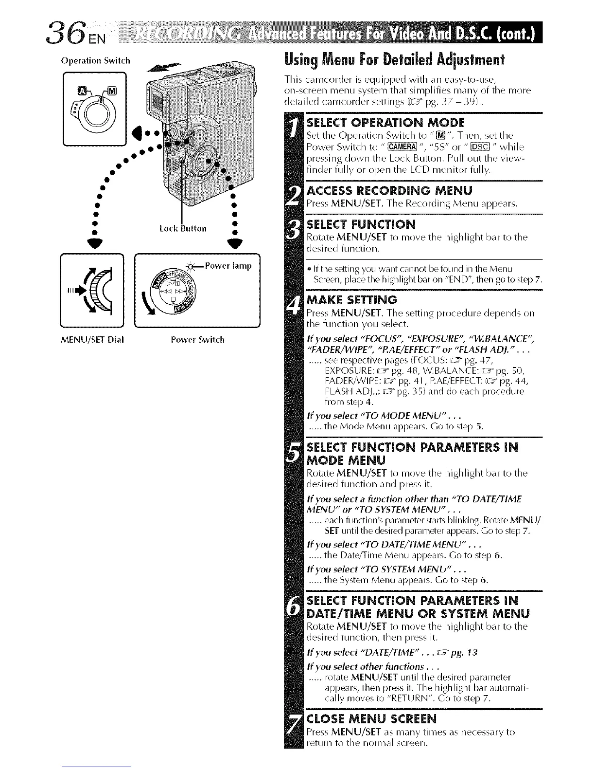 detailed camcorder settings (_-/pg. }7 39).