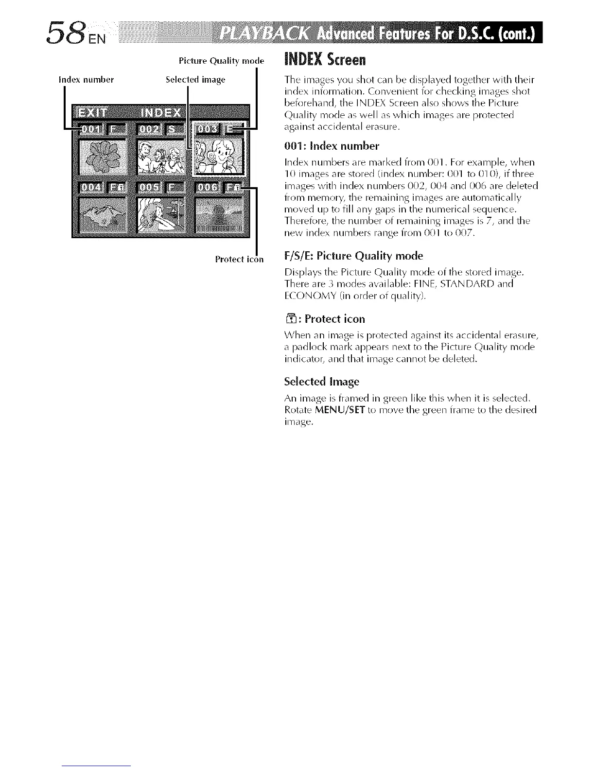 beforehand, the INDEX Screen also sh(iws the Picture