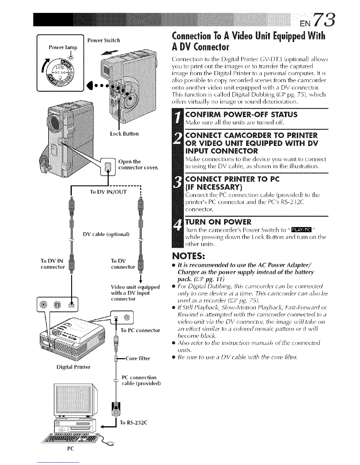 • For Digital Dubbing, &is camcorder carl be conrlected