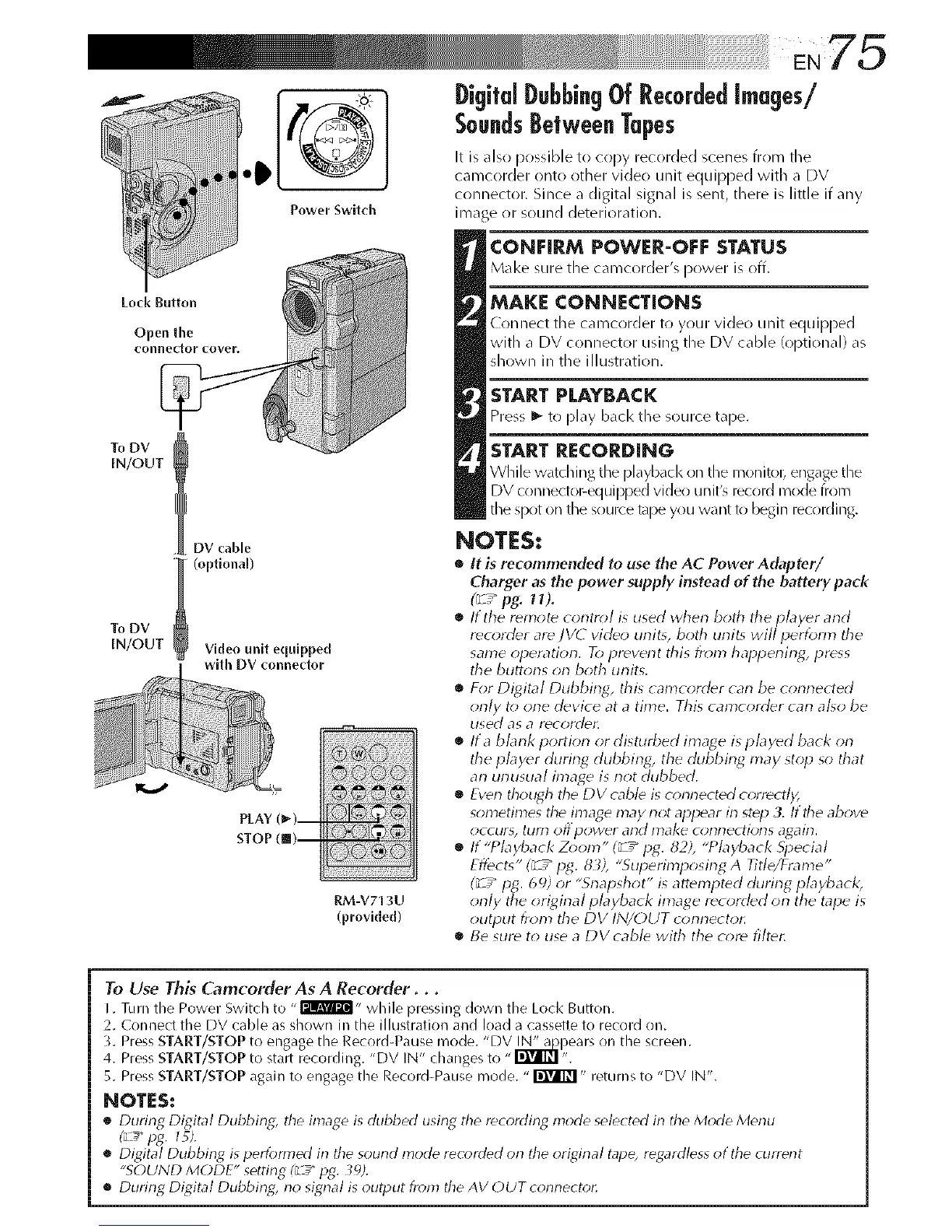 • During Digital Dubbing, rio signal is output from tile AV OUT corlrlectot: