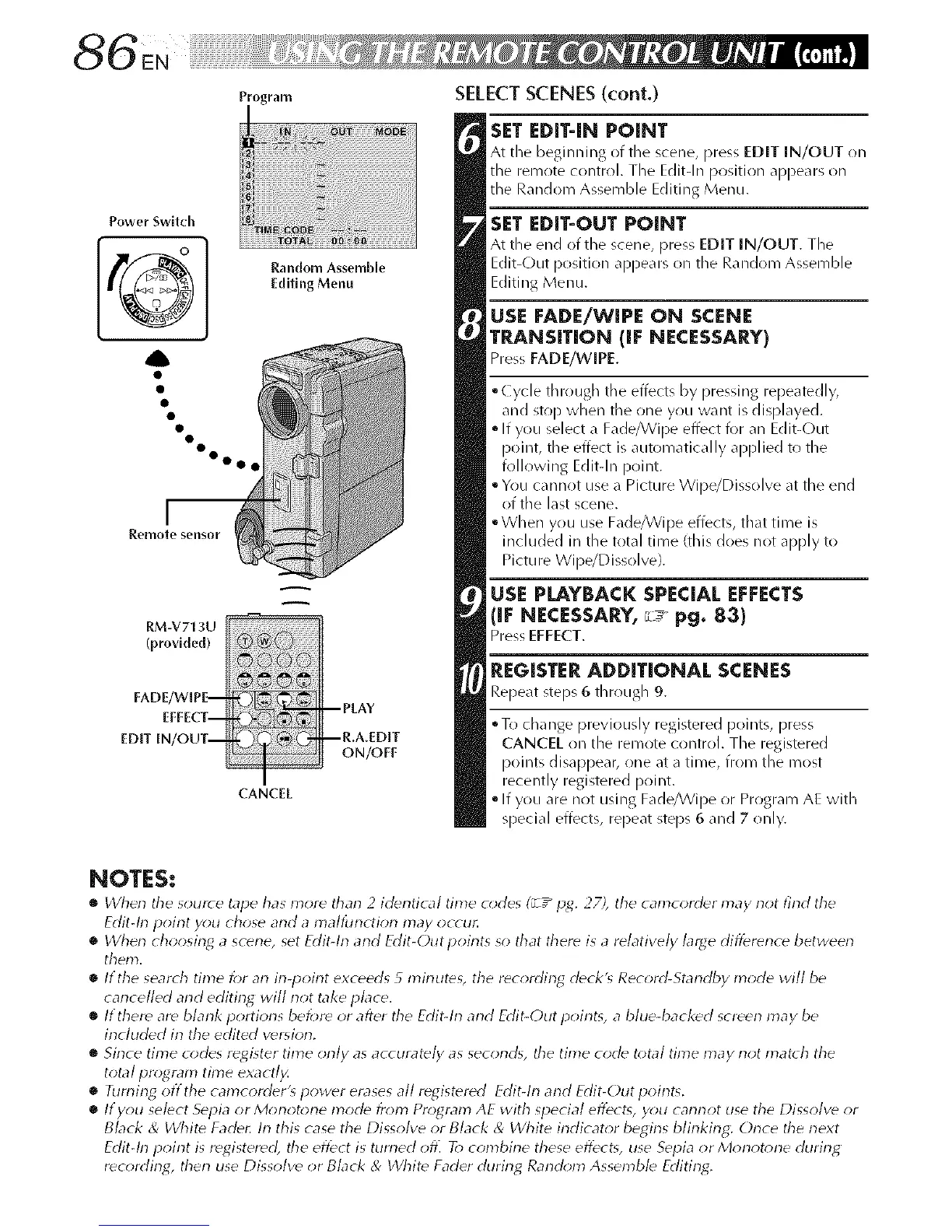 • Riming offthe camcorder'_ power erases all registered Edit-h-1 and Edit-Out poirlt_.