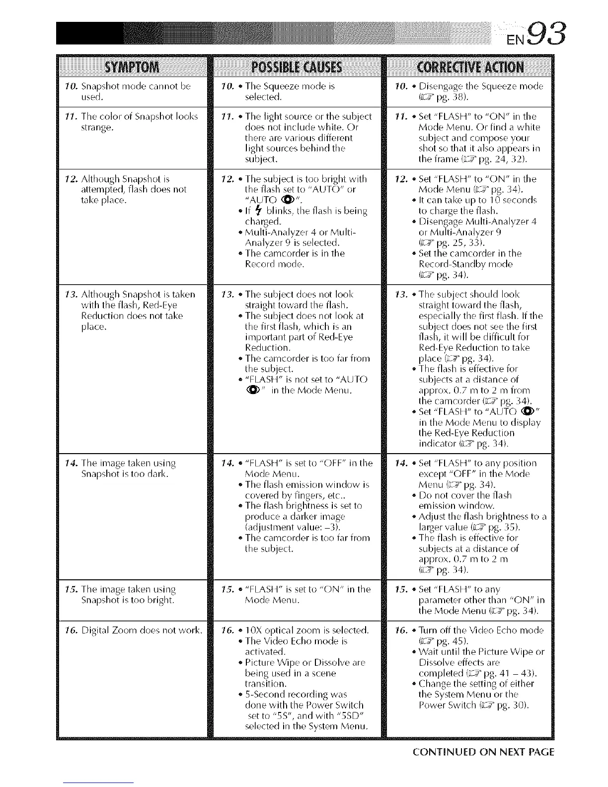11. The color of Snapshot looks 11. o The light source or the subject 11. o Set "FLASH" to "ON" in the