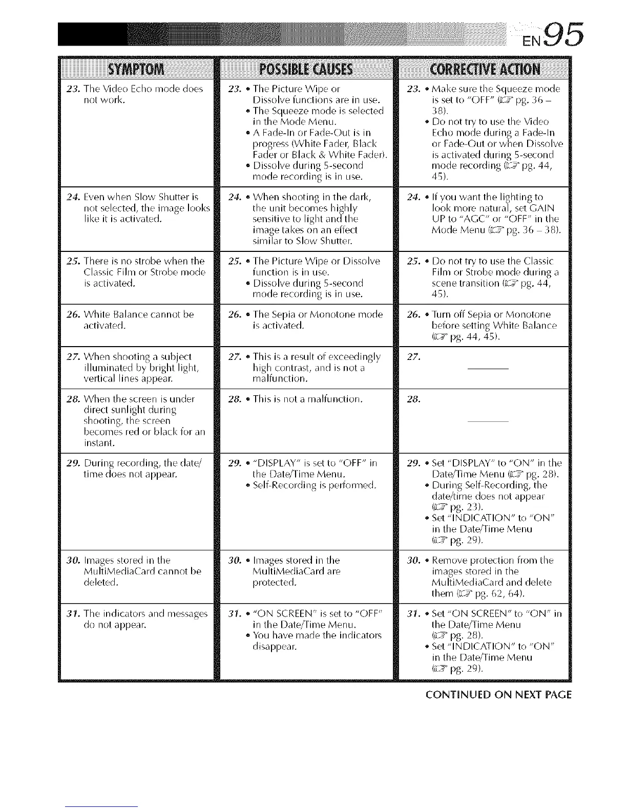 25. There is no strobe when the 25. o The Picture Wipe or Dissolve 25. o Do not try to use the Classic