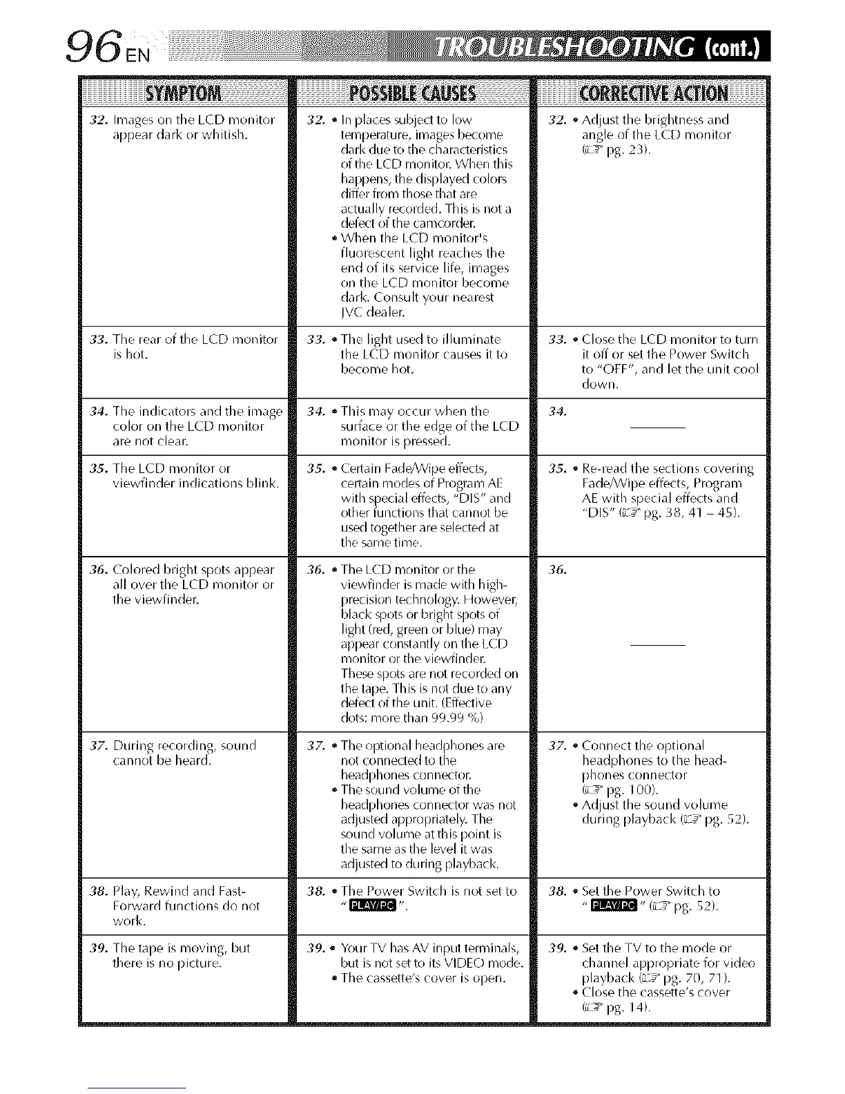 38. Play, Rewind and Fast- 38. _,The Power Switch is not set to 38. ,_Set the Power Switch to