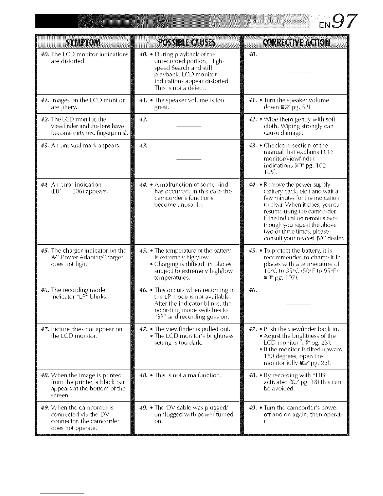 41. Images on tile LCD monitor 41. ,, TILe speal<er volume is too 41. "Turn tile speal<er volume