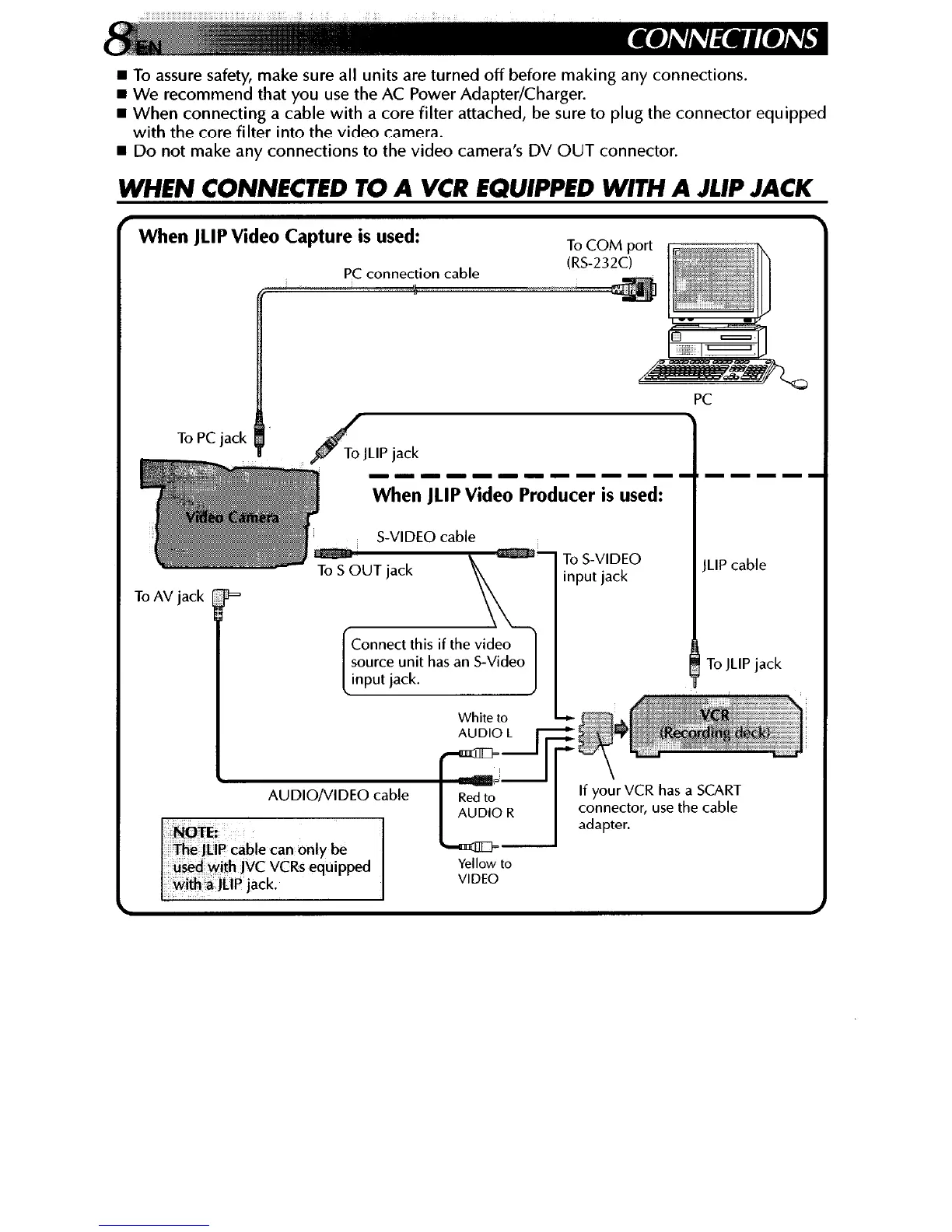 WHEN CONNECTED TO A VCR EQUIPPED WITH A JLIP JACK