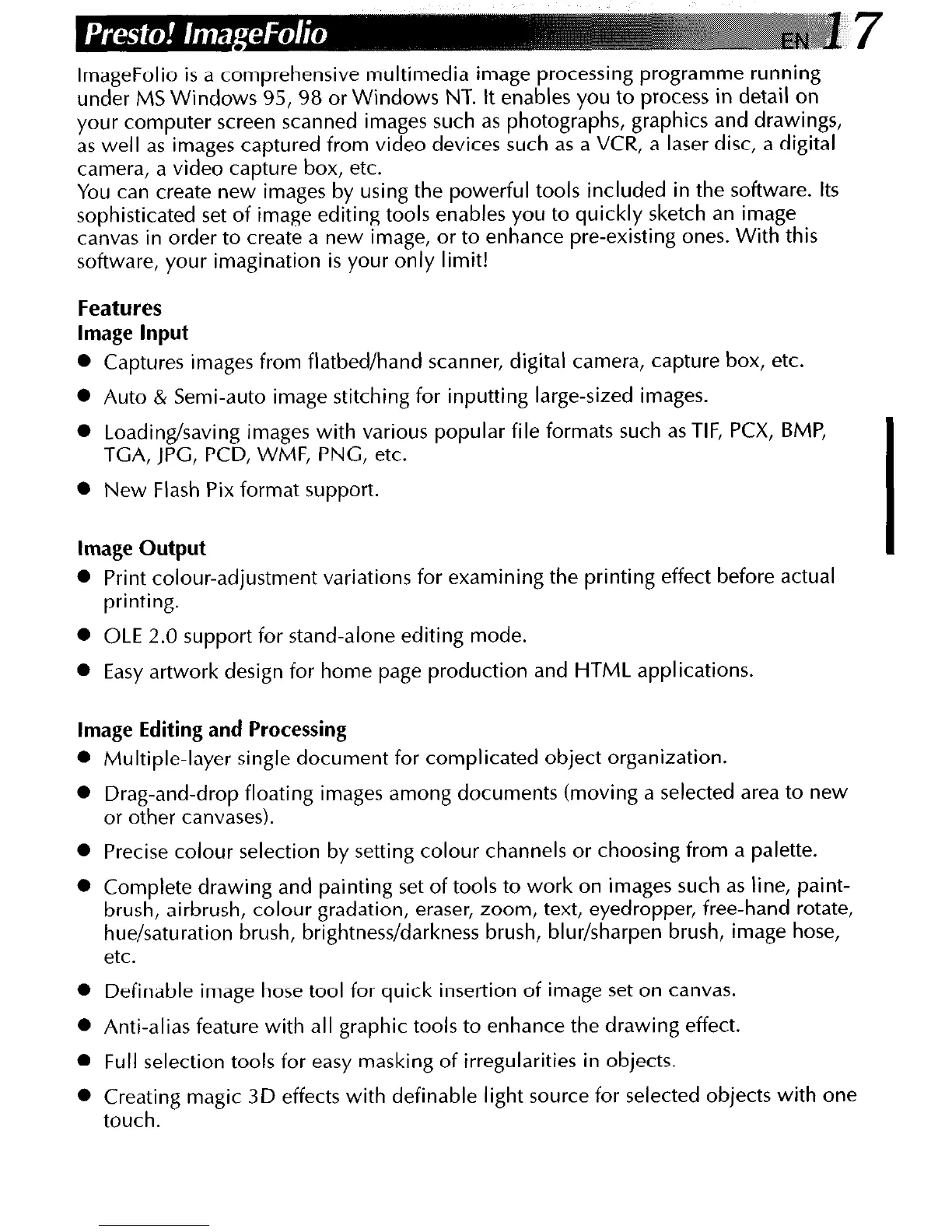 l Loading/saving images with various popular file formats such as TIF, PCX, BMP,