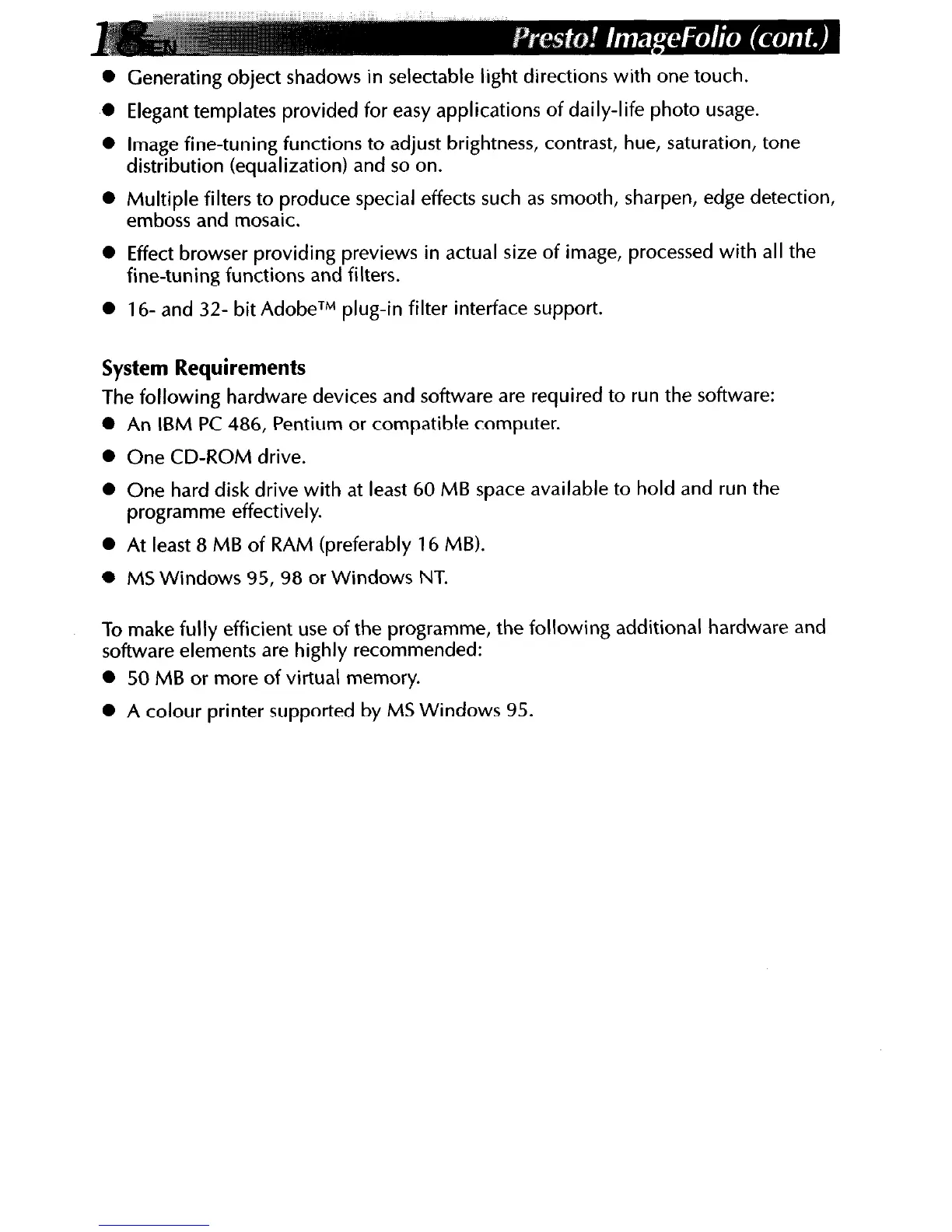 0 16- and 32- bit AdobeTM plug-in filter interface support.