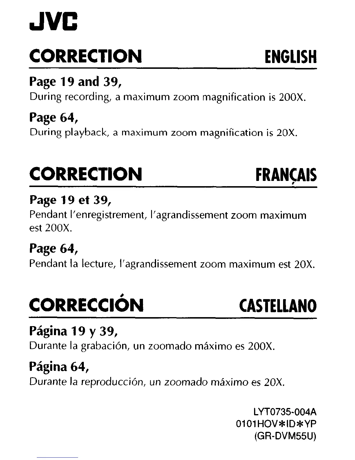 Pendant la lecture, I’agrandissement zoom maximum est 20X.