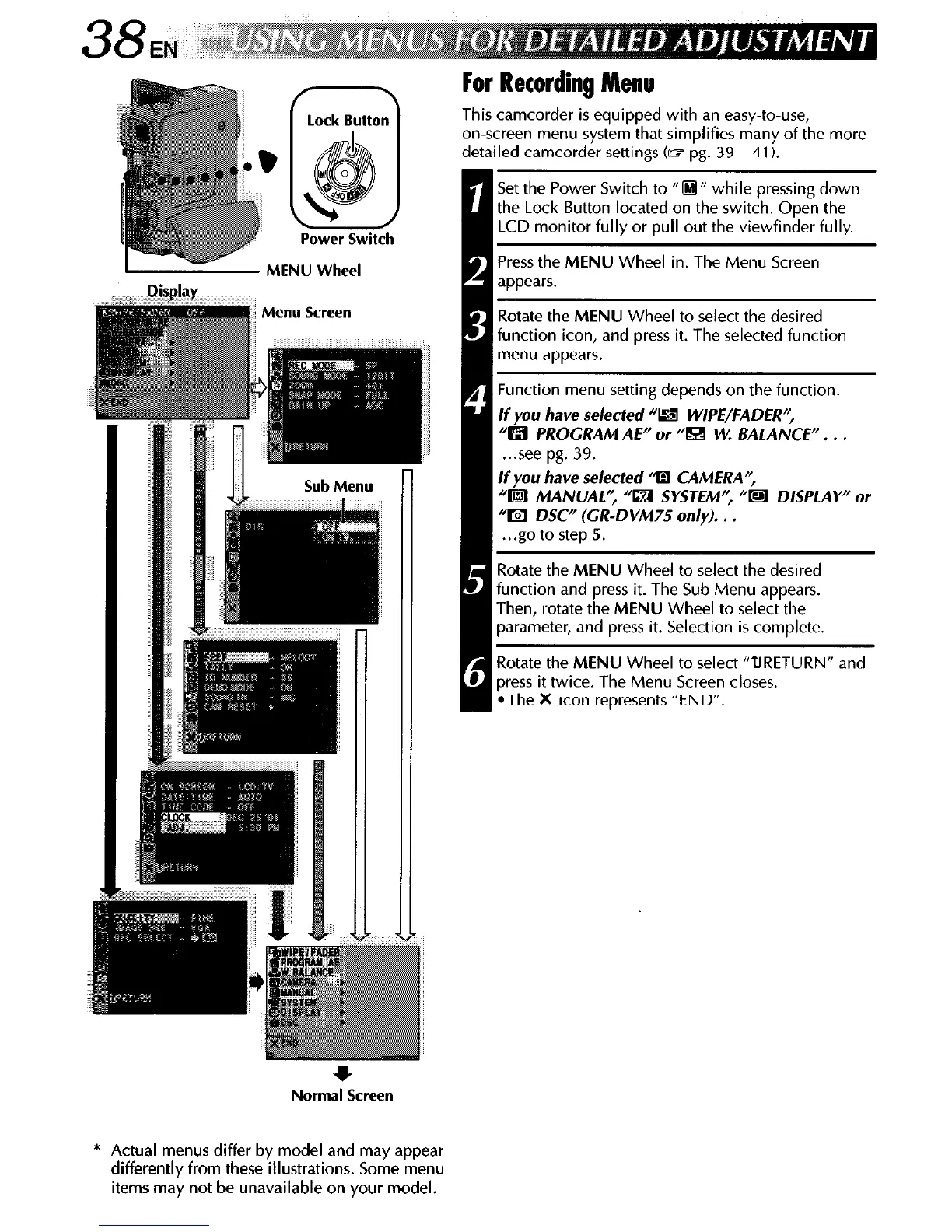 * Actual menus differ by model and may appear