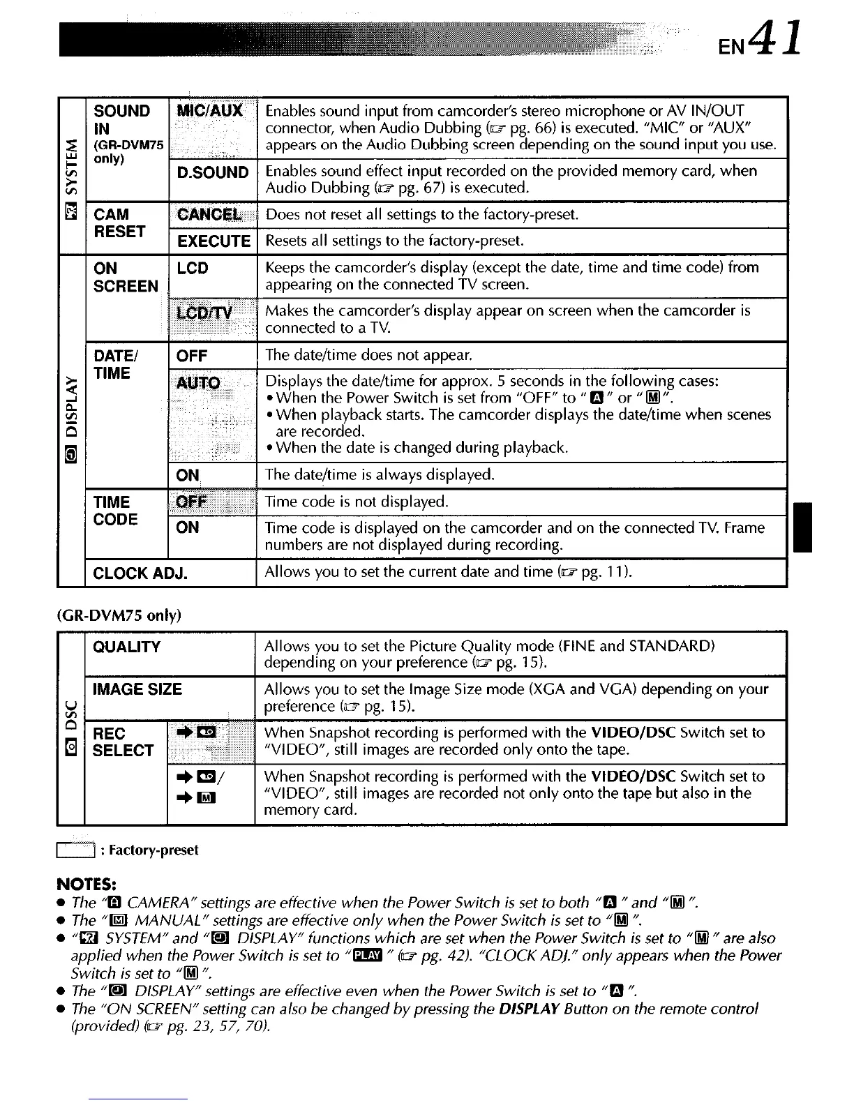 applied when the Power Switch is set to “m n (w pg. 42). “CLOCK AD].” only appears when the Power