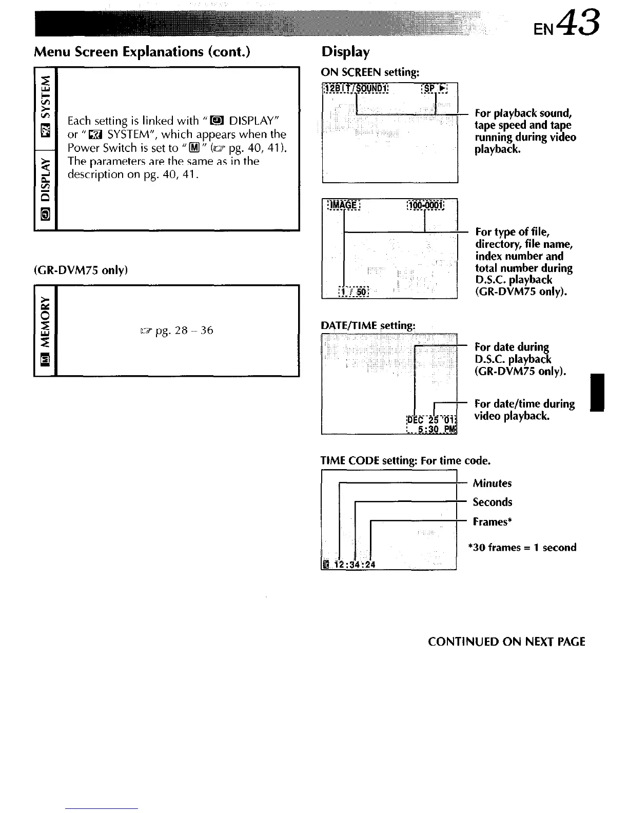 TIME CODE setting: For time code.