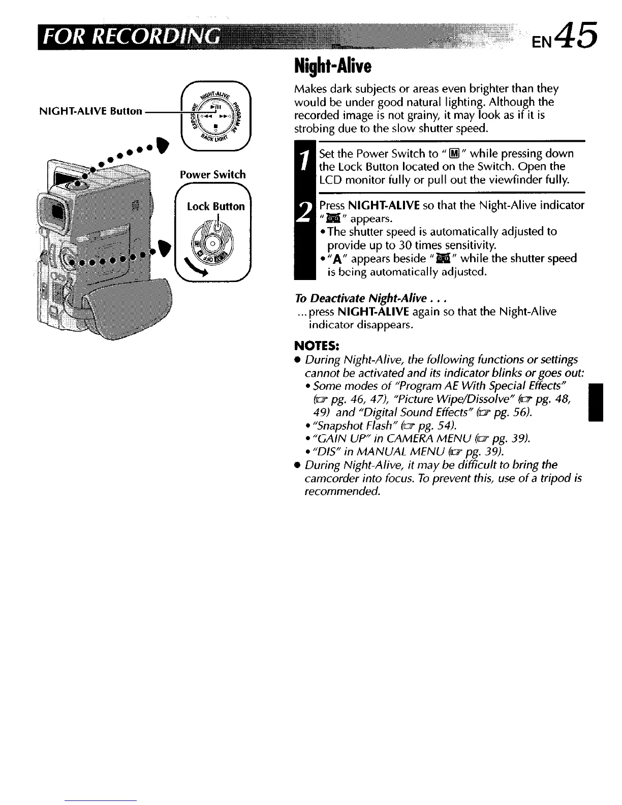 “GAIN UP”in CAMERA MENU (07 pg. 39).