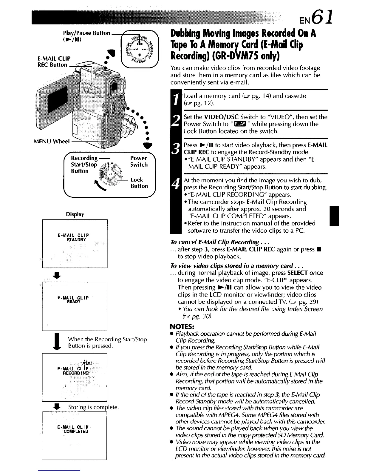 Recording) (GR-DVM75 only)