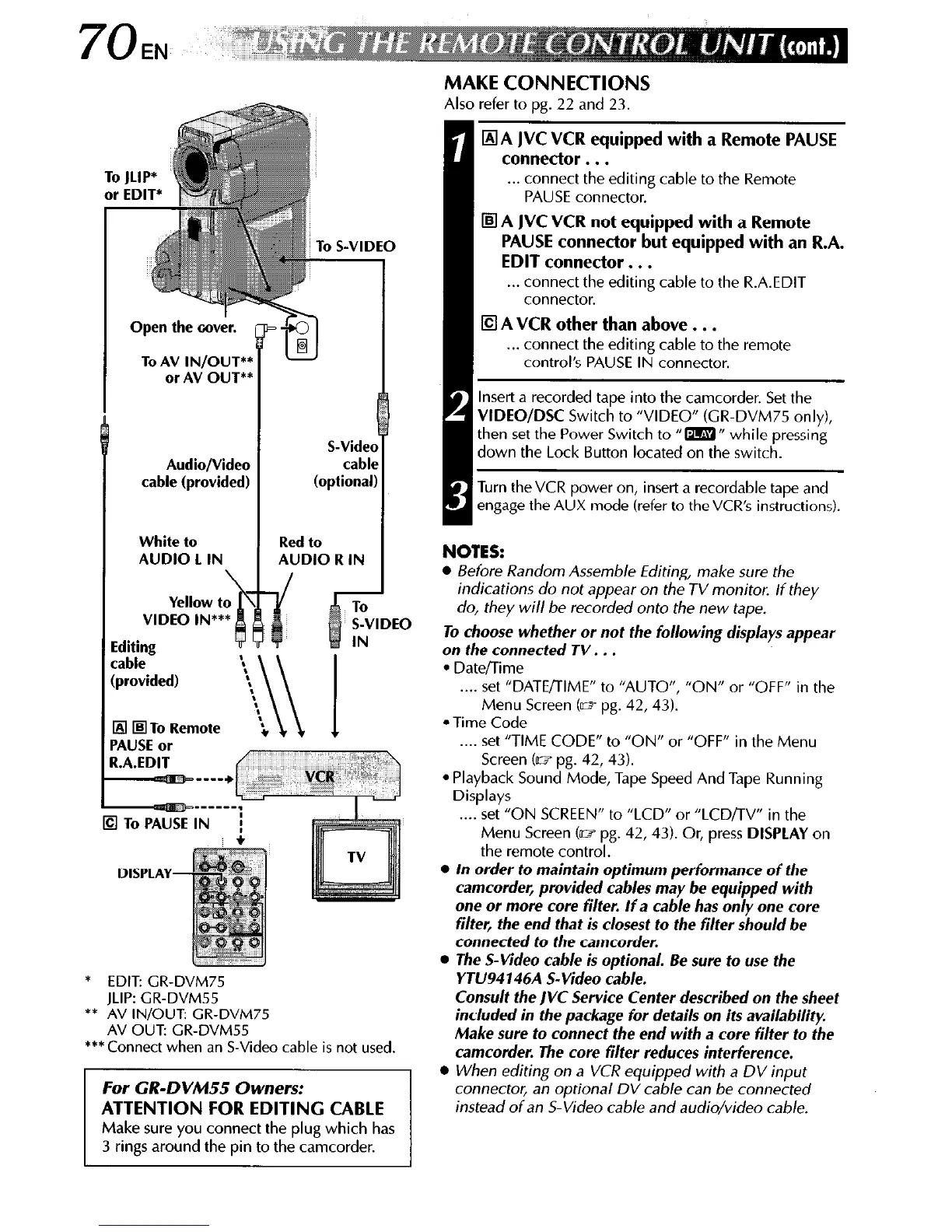 VlDEO/DSC Switch to “VIDEO” (GR-DVM75 only),