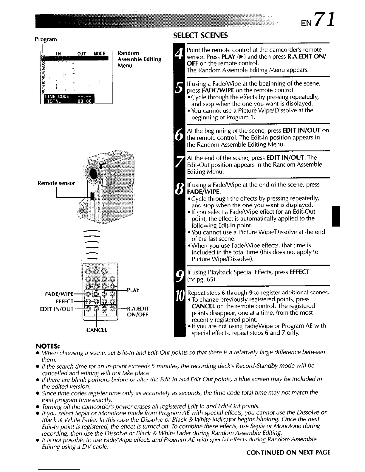 recording, then use the Dissolve or Black & White Fader during Random Assemble Editing.
