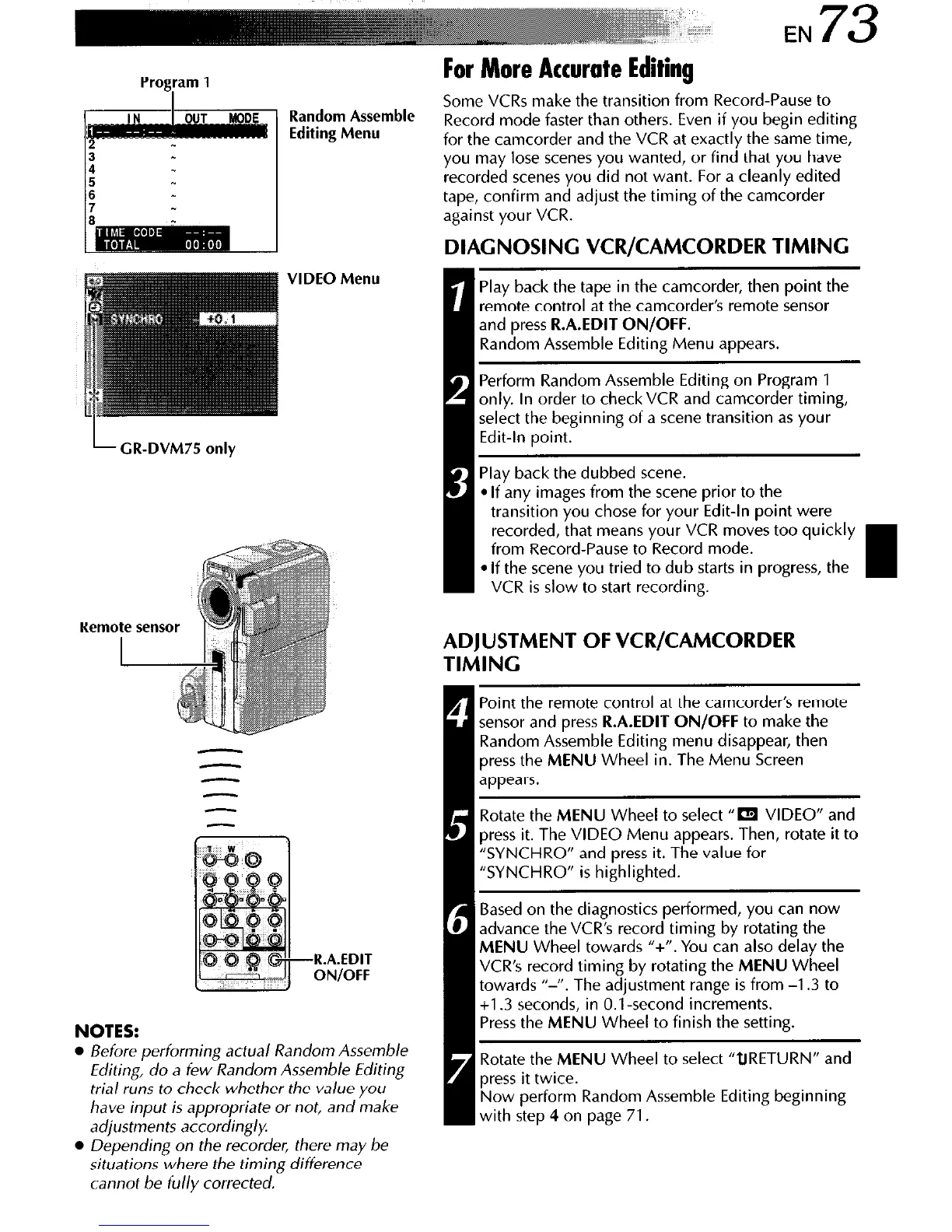 tape, confirm and adjust the timing of the camcorder