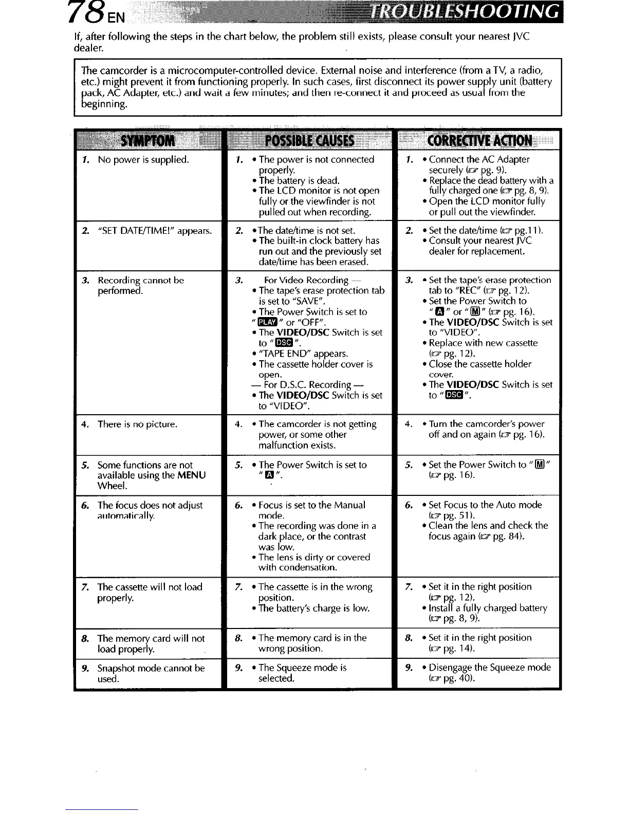 If, after following the steps in the chart below, the problem still exists, please consult your nearest JVC
