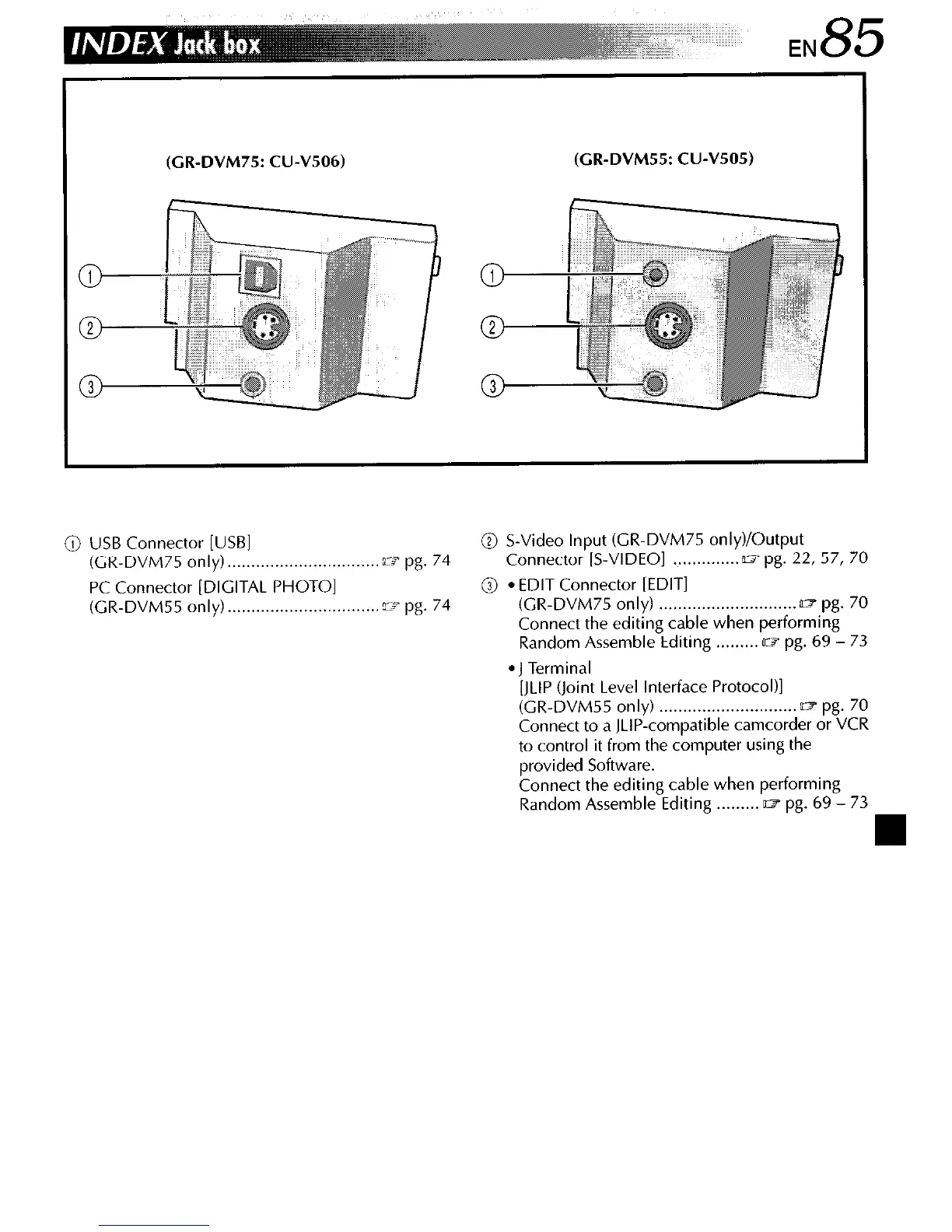 @ S-Video Input (CR-DVM75 only)/Output