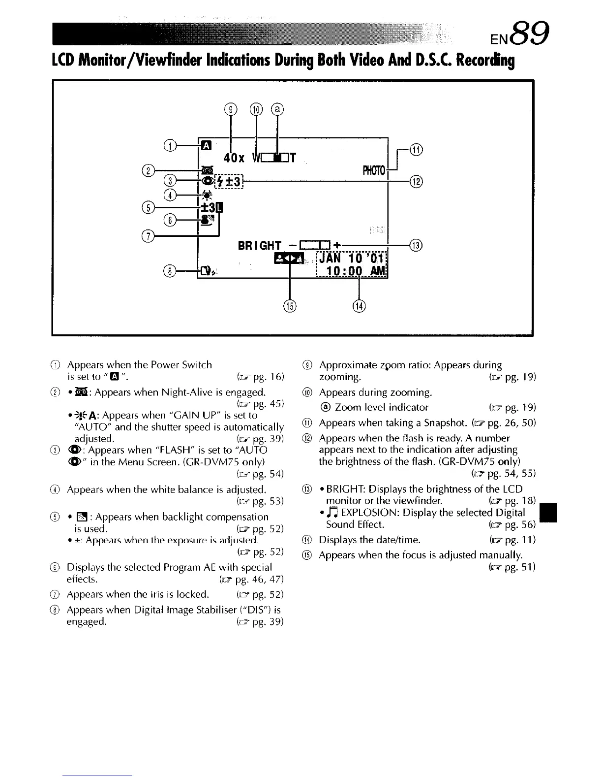 the brightness of the flash. (GR-DVM75 only)