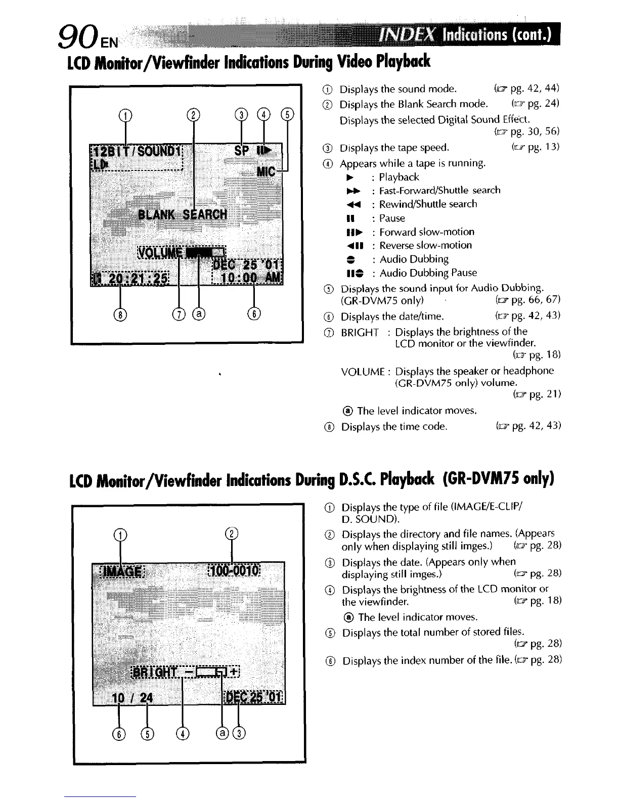 LCD Monitor/Viewfinder Indications During D.S.C. Playback (GR-DVM75 only)