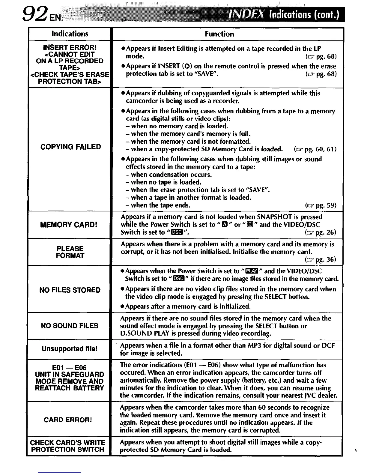 the camcorder. If the indication remains, consult your nearest JVC dealer.