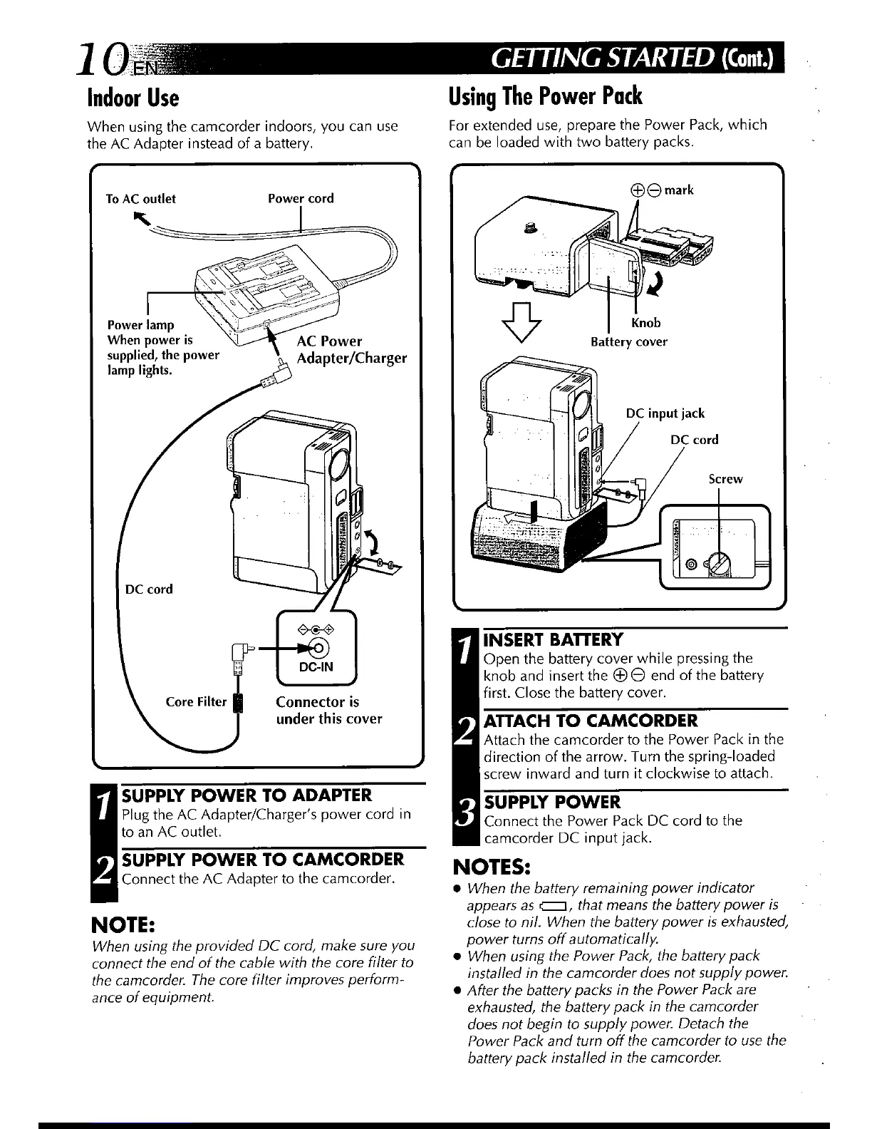 JVC GR-DVX PRO - Indoor Use and Power Pack Usage
