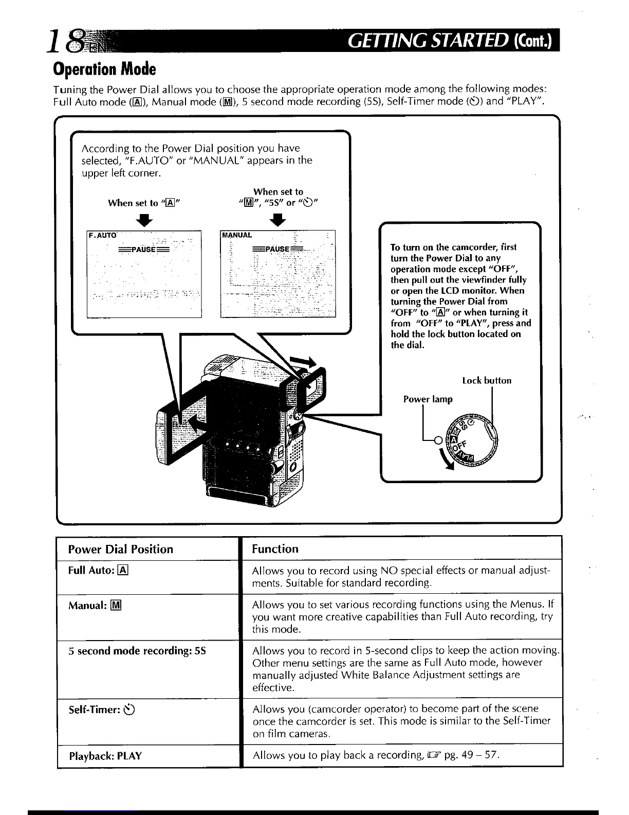 JVC GR-DVX PRO - Operation Mode Selection