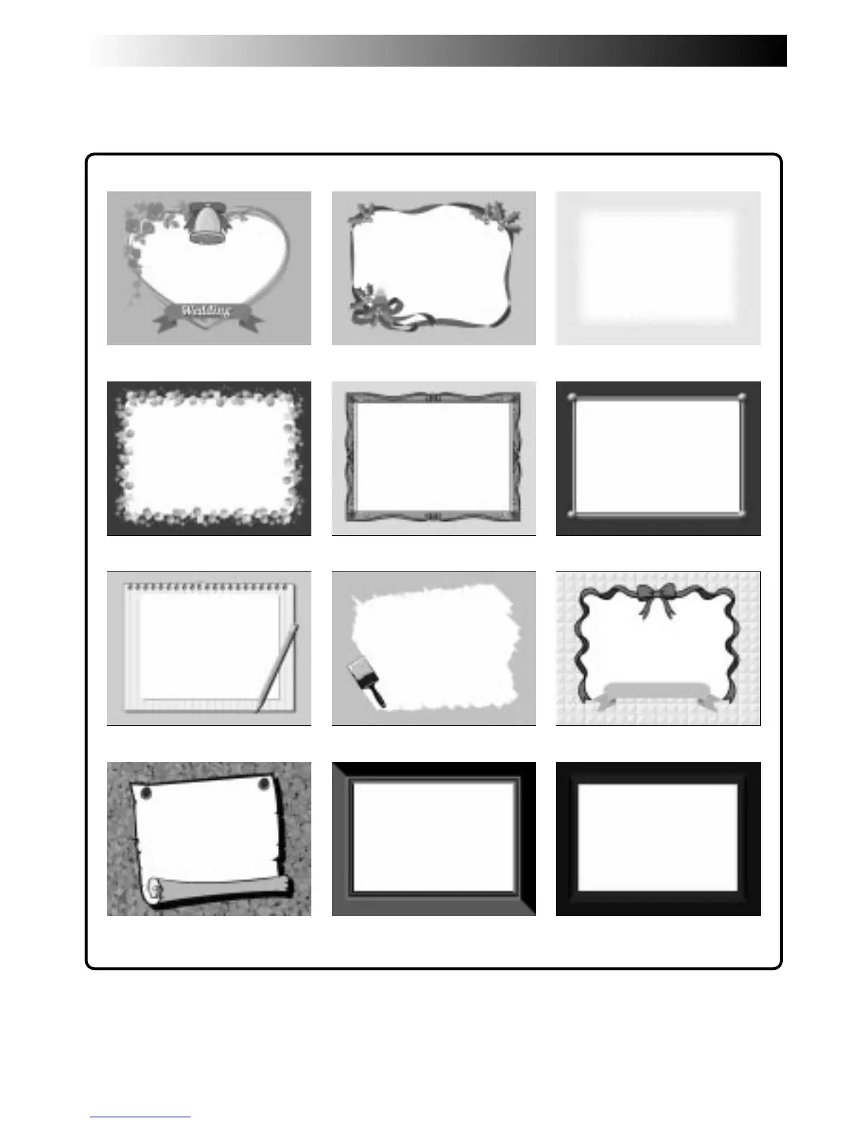 This camcorder has 12 preset titles/frames stored in its memory, as shown in the following illustration.