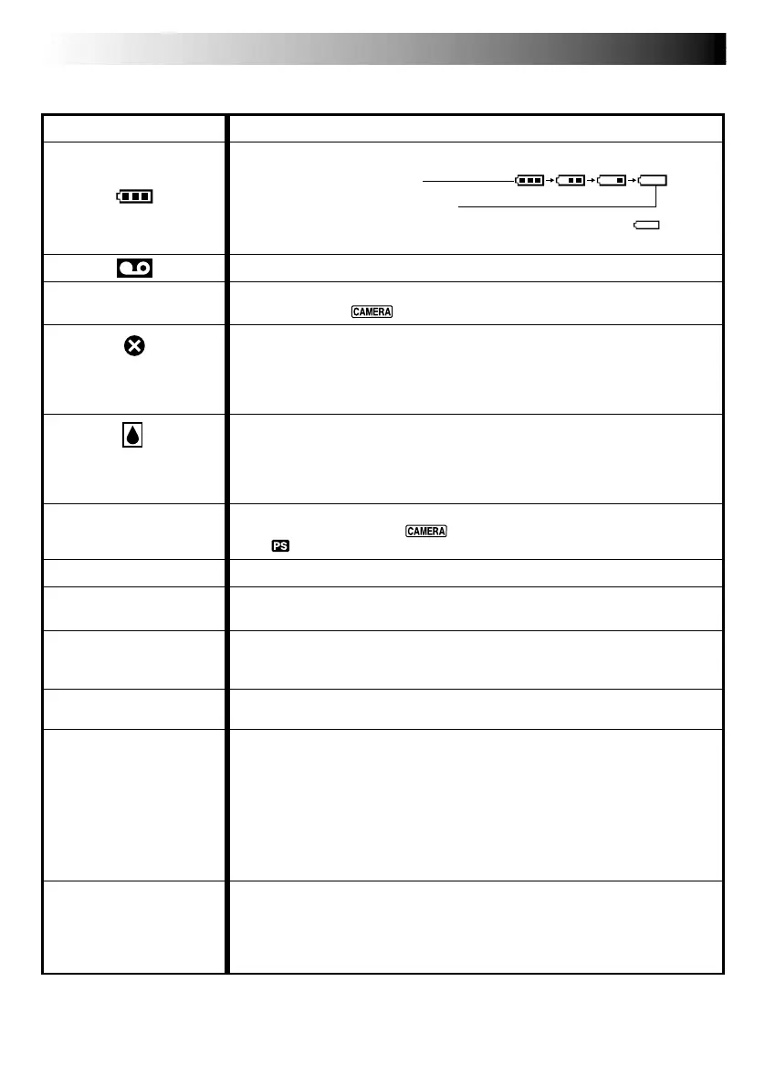 Appears if a tape is not loaded when START/STOP is pressed while the