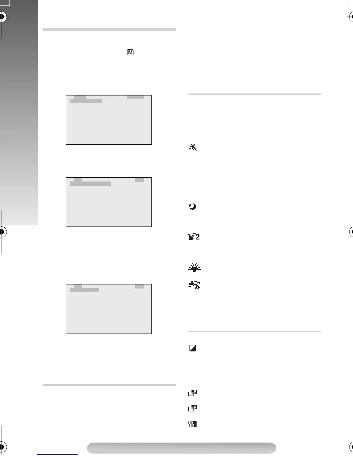mode, the Auto Focus (pg. 9) and S.LX (pg.