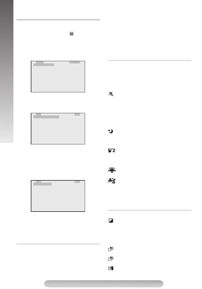 mode, the Auto Focus (pg. 9) and S.LX (pg.