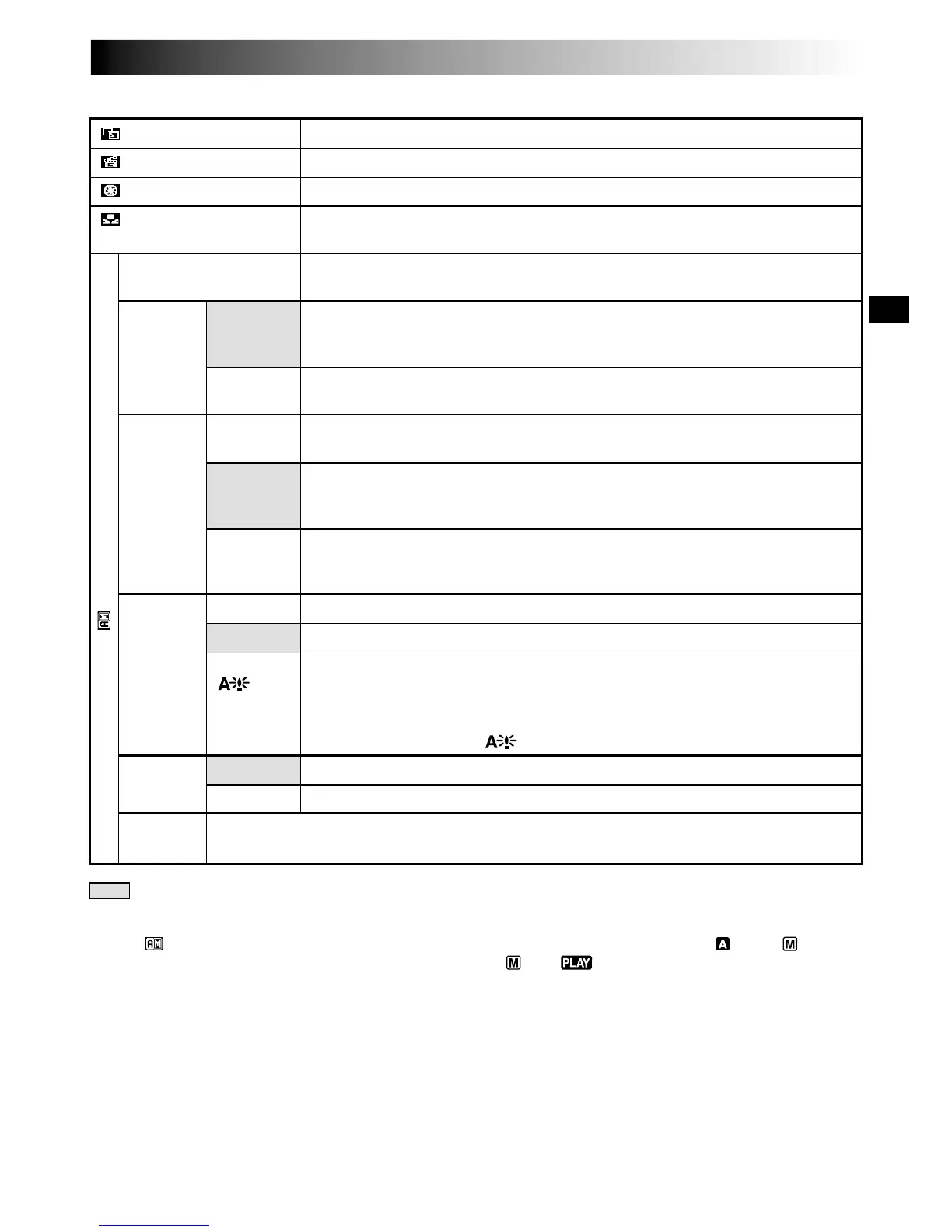 The “ CAMERA MENU” settings are effective when the Power Switch is set to both “ ” and “ ”.