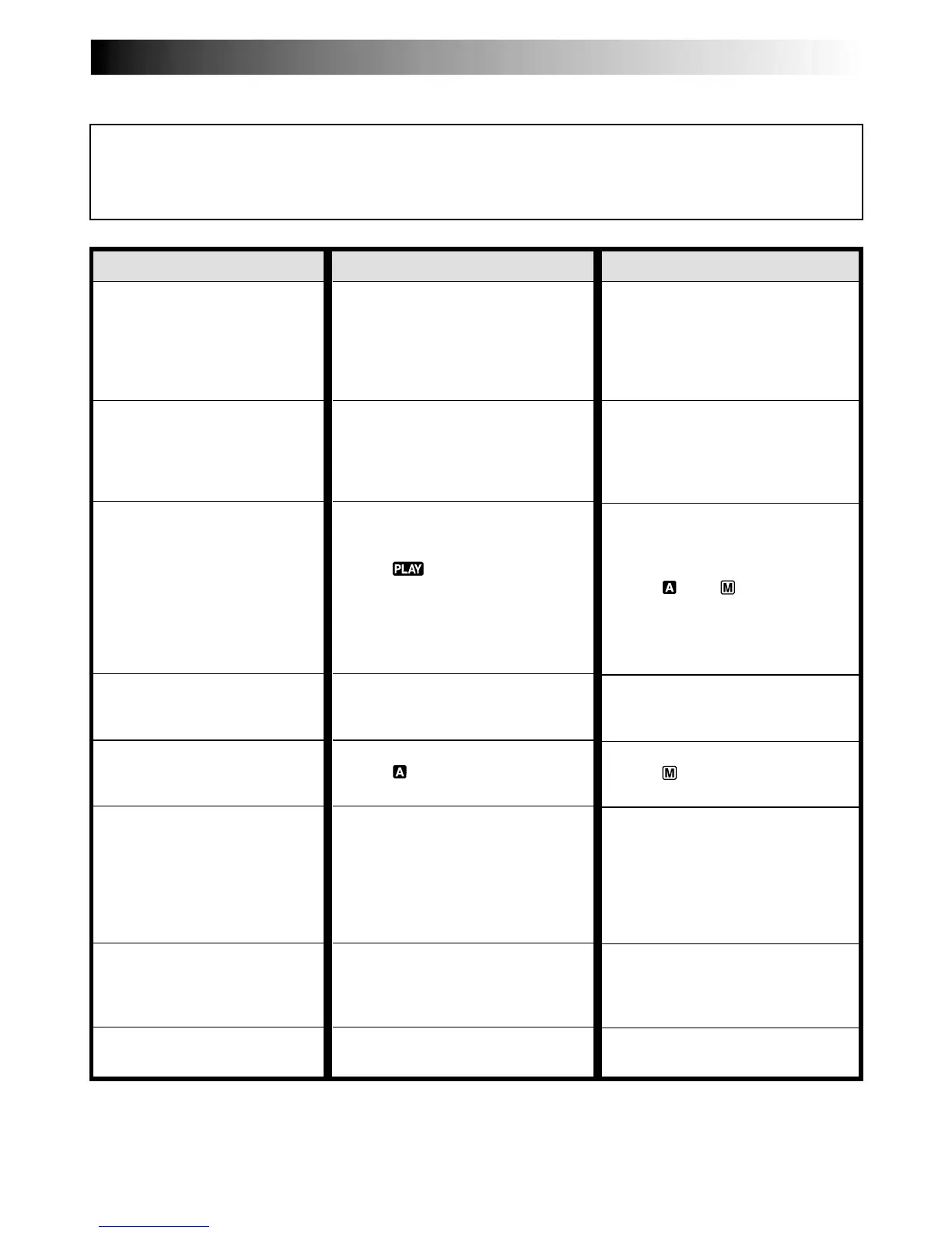If, after following the steps in the chart below, the problem still exists, please consult your nearest JVC dealer.