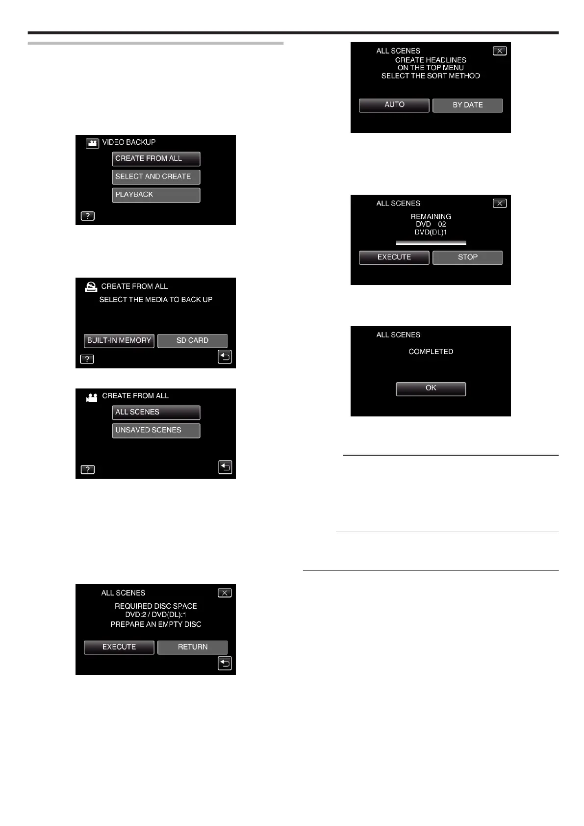 “ALL SCENES” (video)/“ALL IMAGES” (still image):