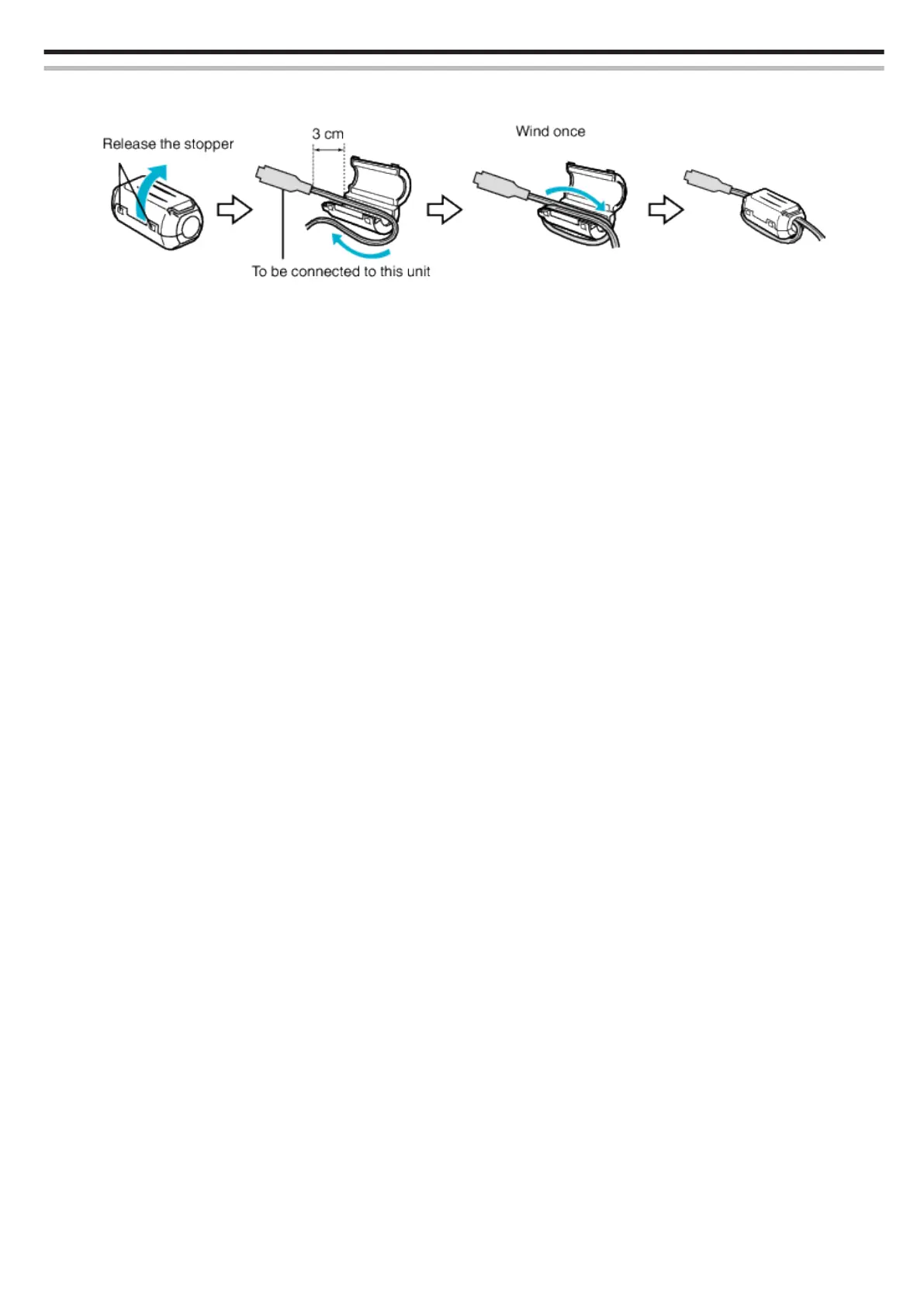 Attach a core filter to the power cord of the AC adapter that is connected to this unit.