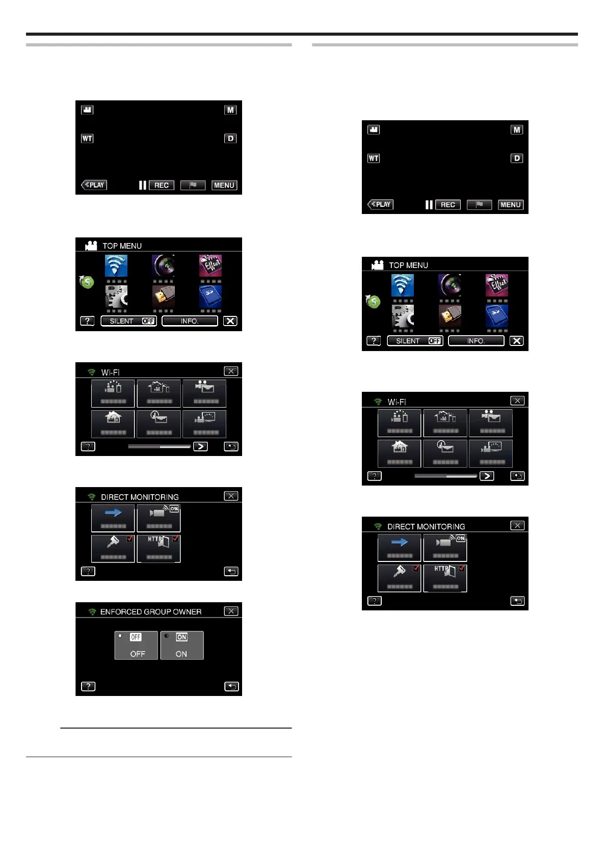 Tap the “DIRECT MONITORING” (N) icon in the “Wi-Fi” menu.