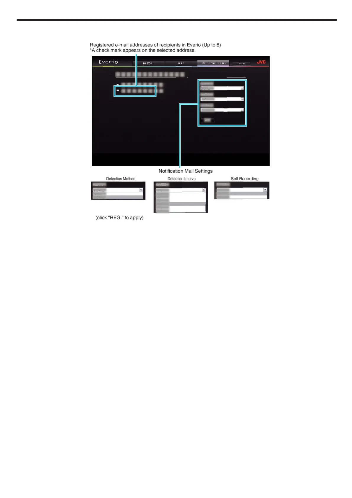 Notification mail settings such as detection method and recipient’s e-mail address can be changed even when the camera is out of reach.