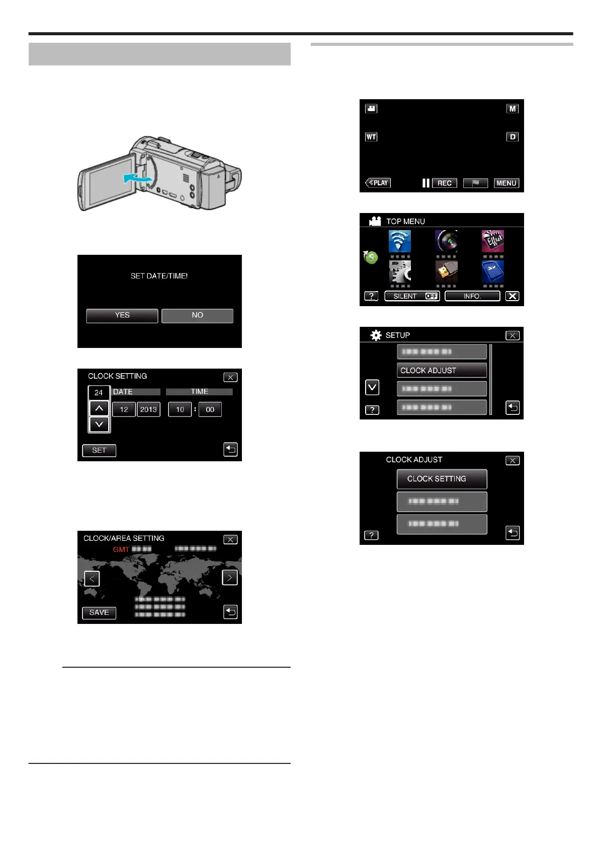 Set the clock with “CLOCK ADJUST” from the menu.