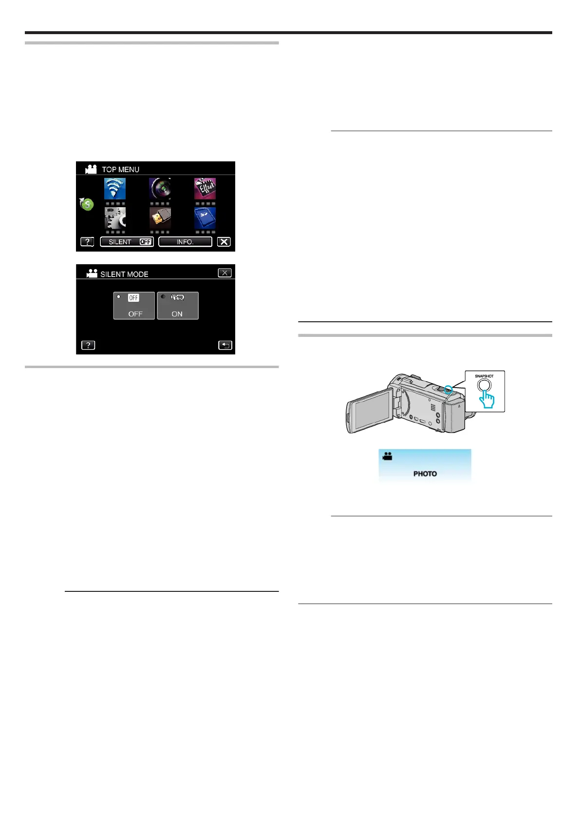 sounds will not be output. Use this mode to record quietly in dark places such
