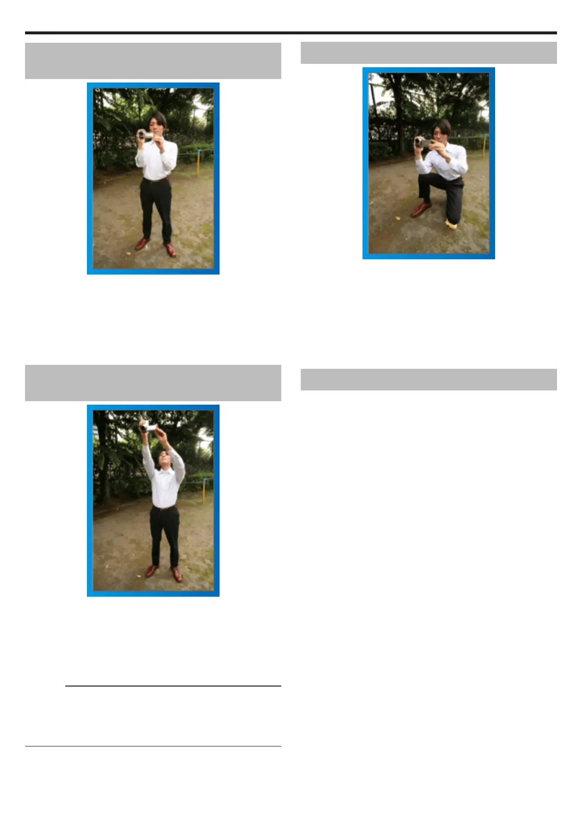B Extend your right hand and hold the camcorder over your head.