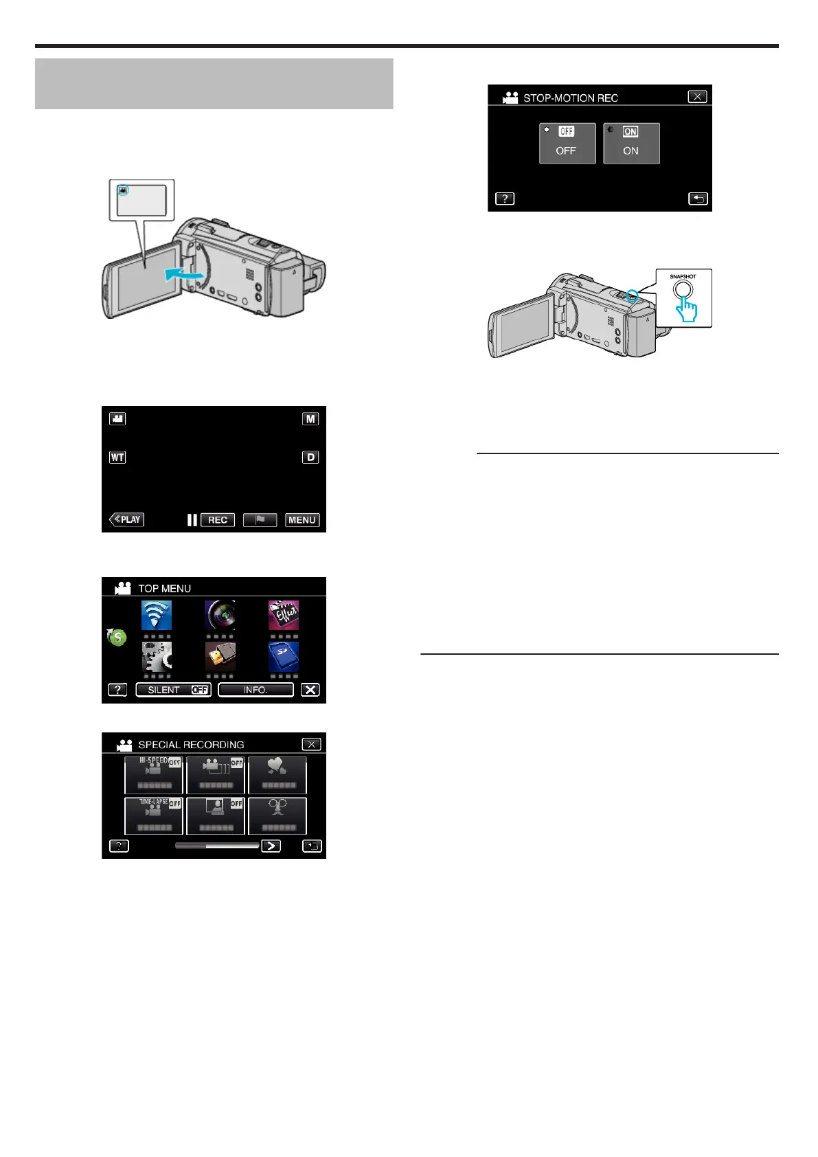 Audio cannot be recorded during “STOP-MOTION REC”.