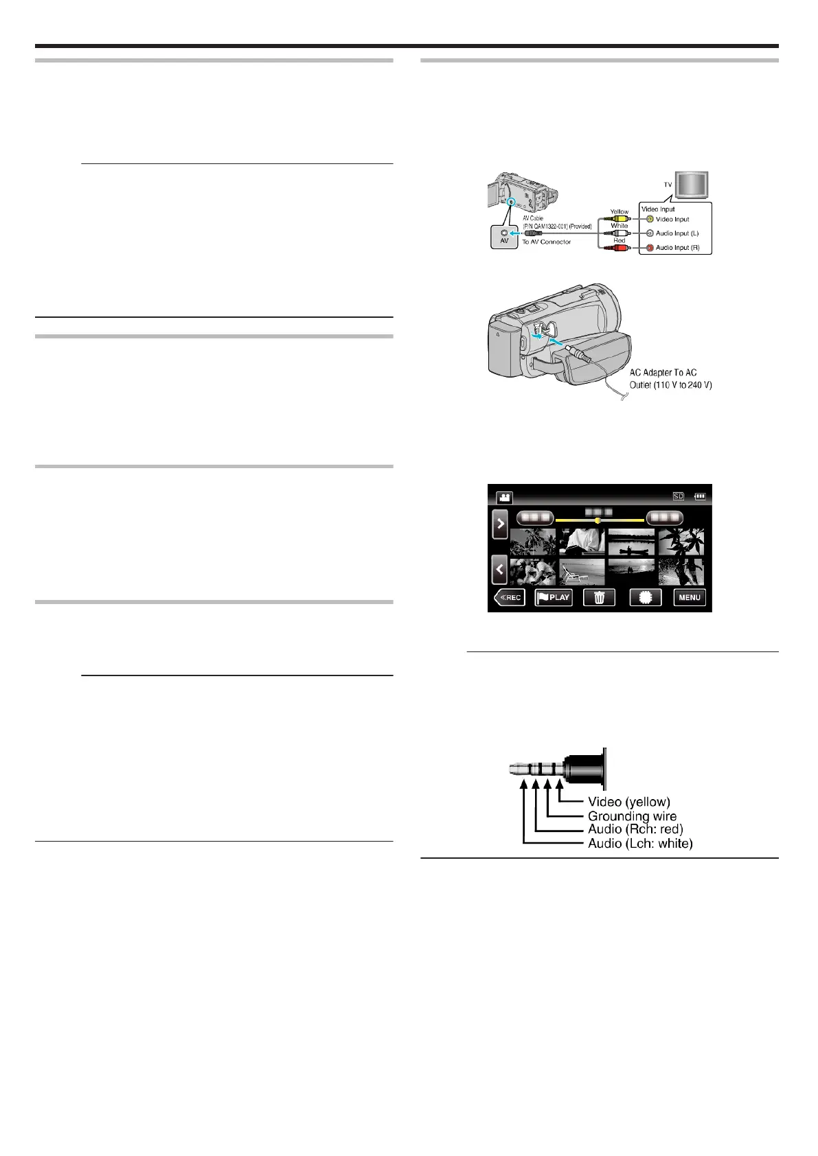 Wiring specifications (for video/audio) of the 4-pole mini plug are described