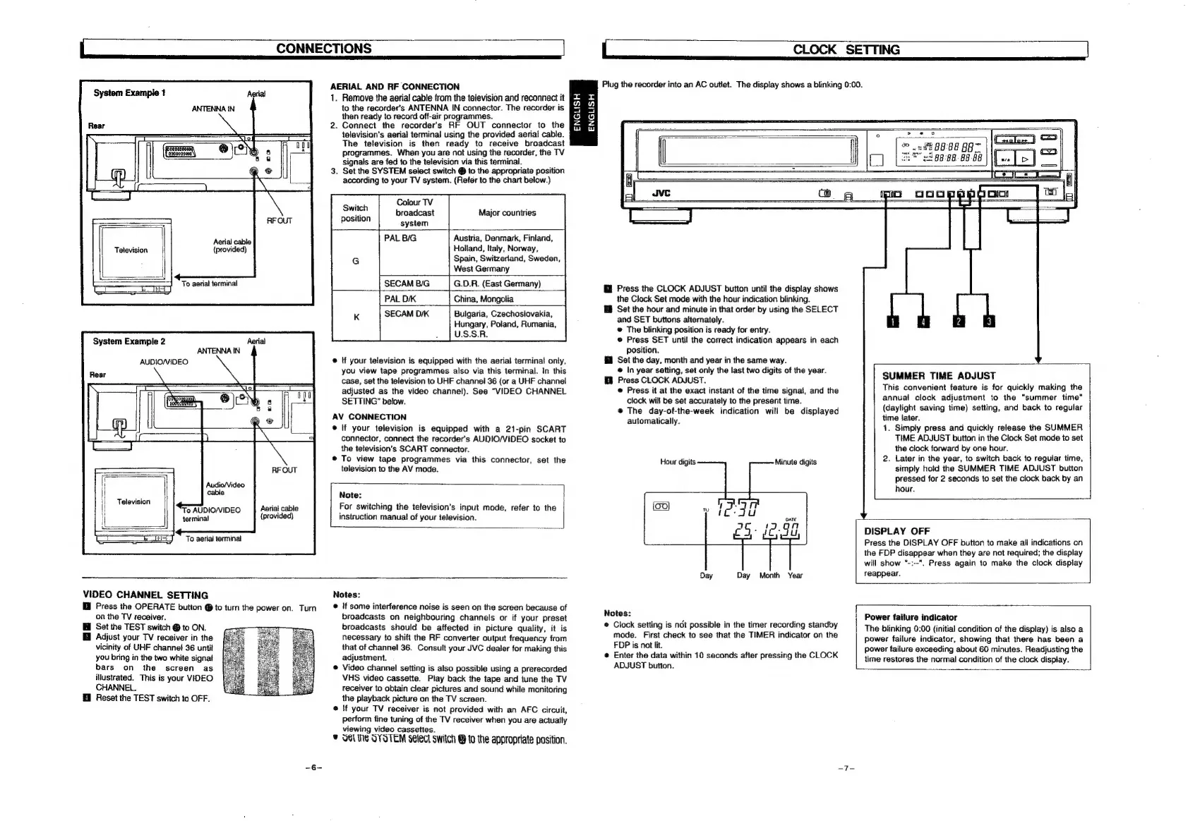JVC HR-D540EE - Clock Setting; Video Channel Setting