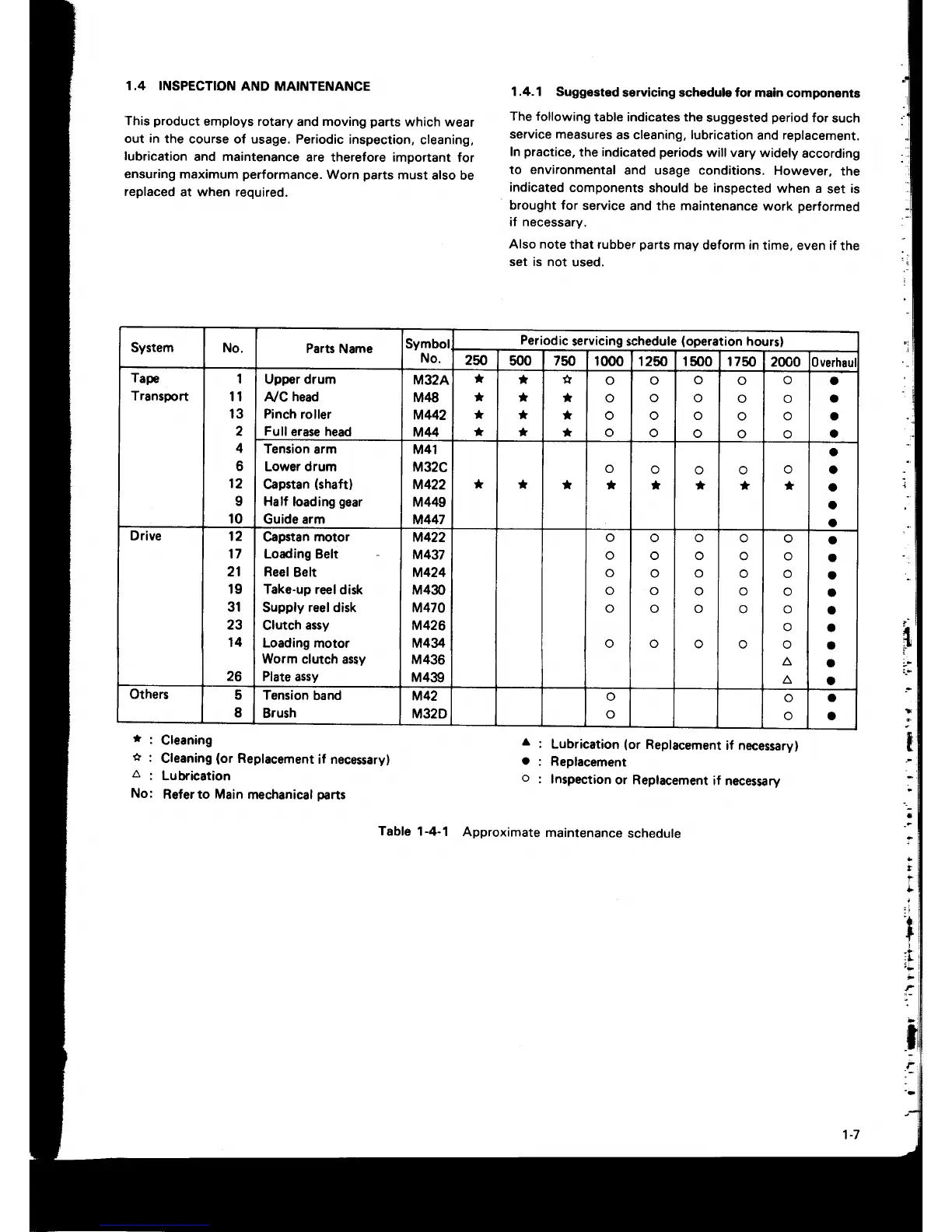 JVC HR-D960E - Inspection and Maintenance; Suggested Servicing Schedule for Main Components; Approximate Maintenance Schedule