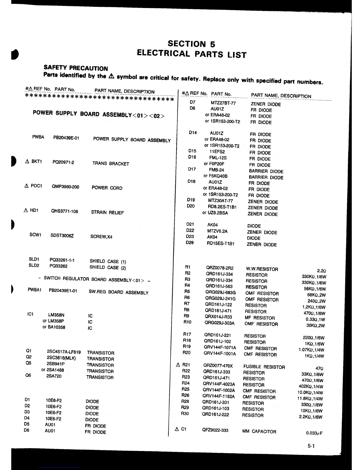JVC HR-D960E - Electrical Parts List; Power Supply Board Assembly