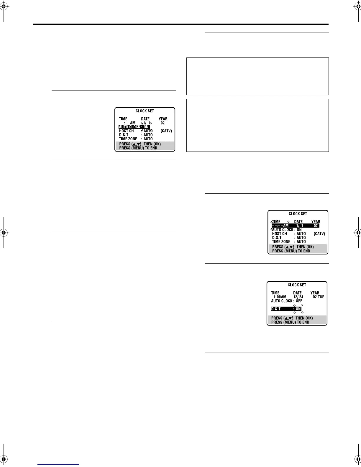 : Select if you want to adjust your VCR’s clock