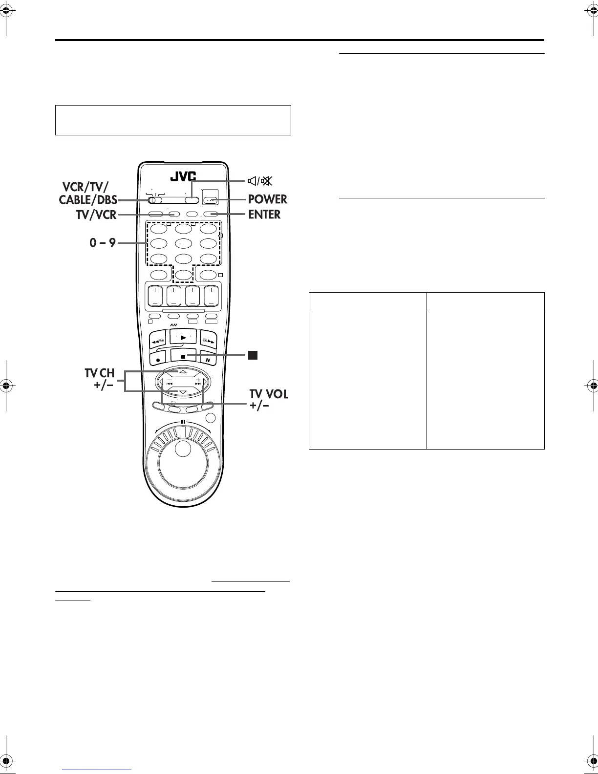 ● To return the Remote to VCR control, Set the