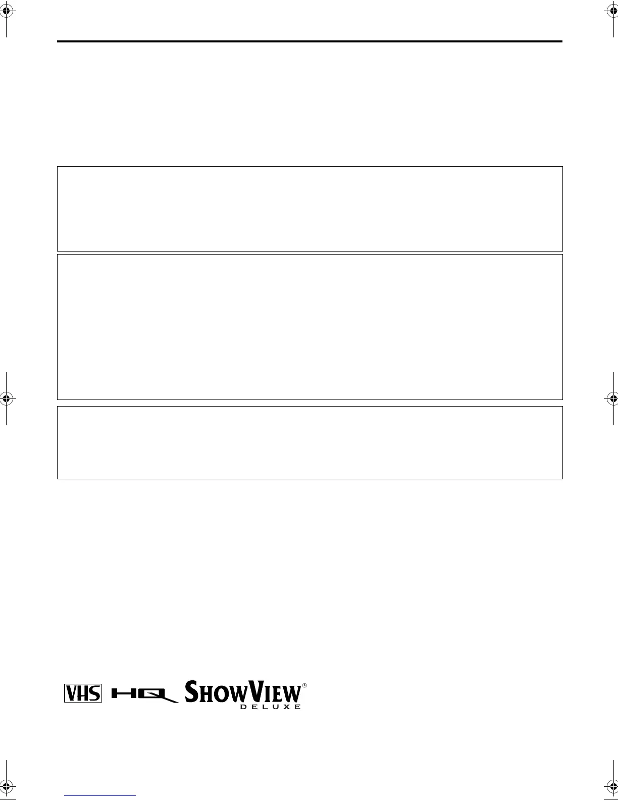 ● Cassettes marked “VHS” (or “S-VHS”) can be used with this video cassette recorder, however, only VHS signals can be played back