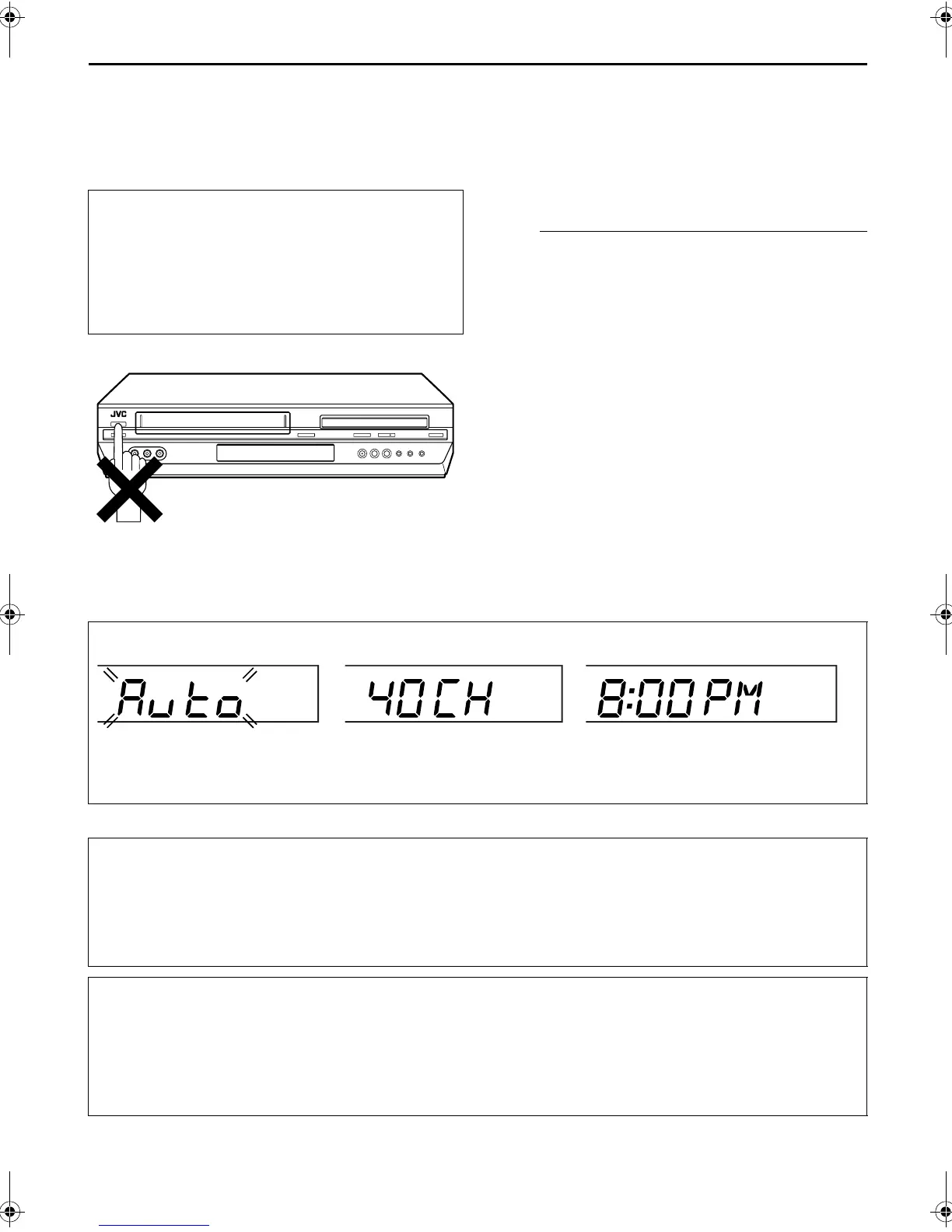 ● If “–:– –” appears on the front display panel, your antenna cable may not be connected to the unit or there may not be a Host PBS